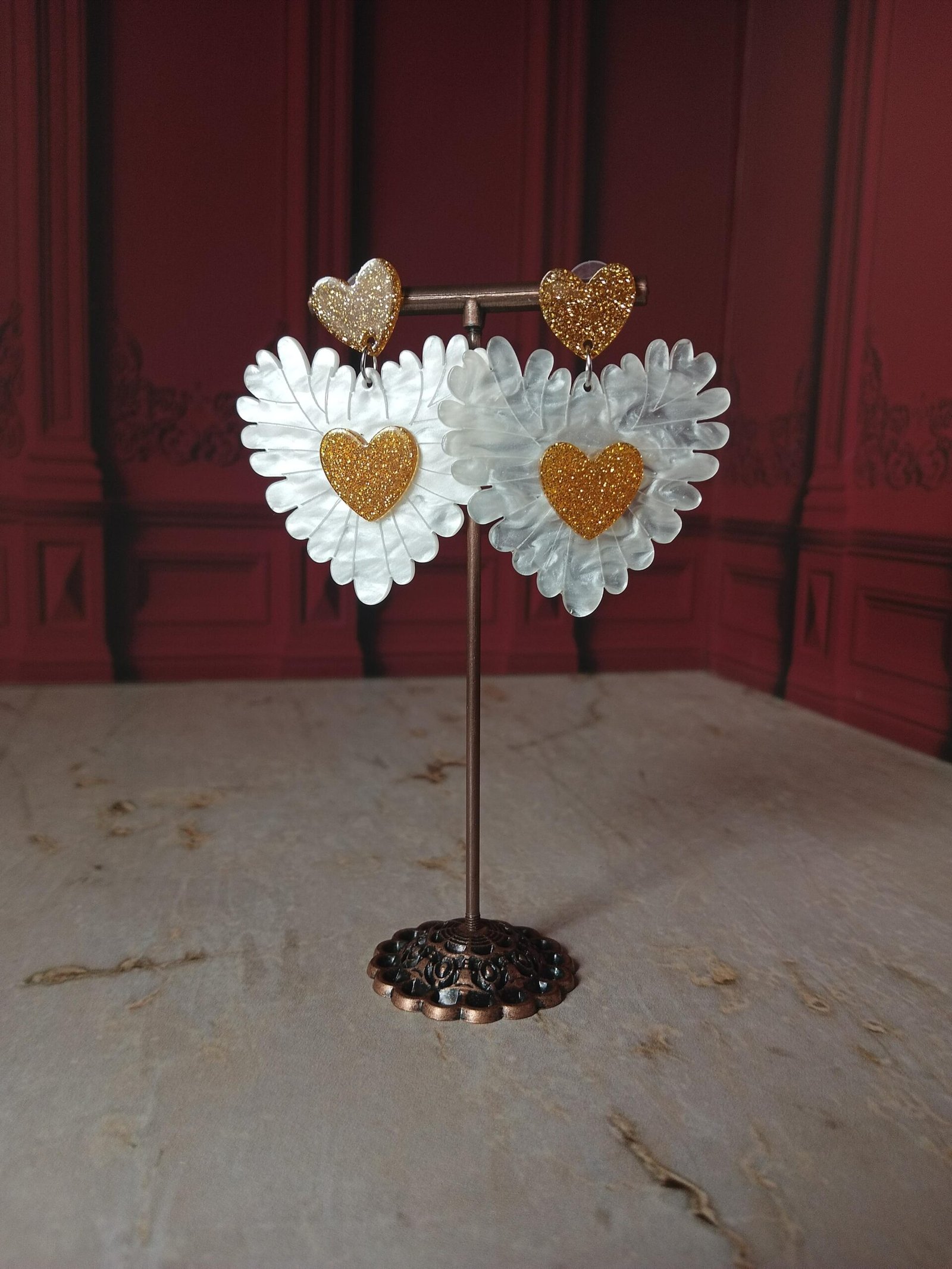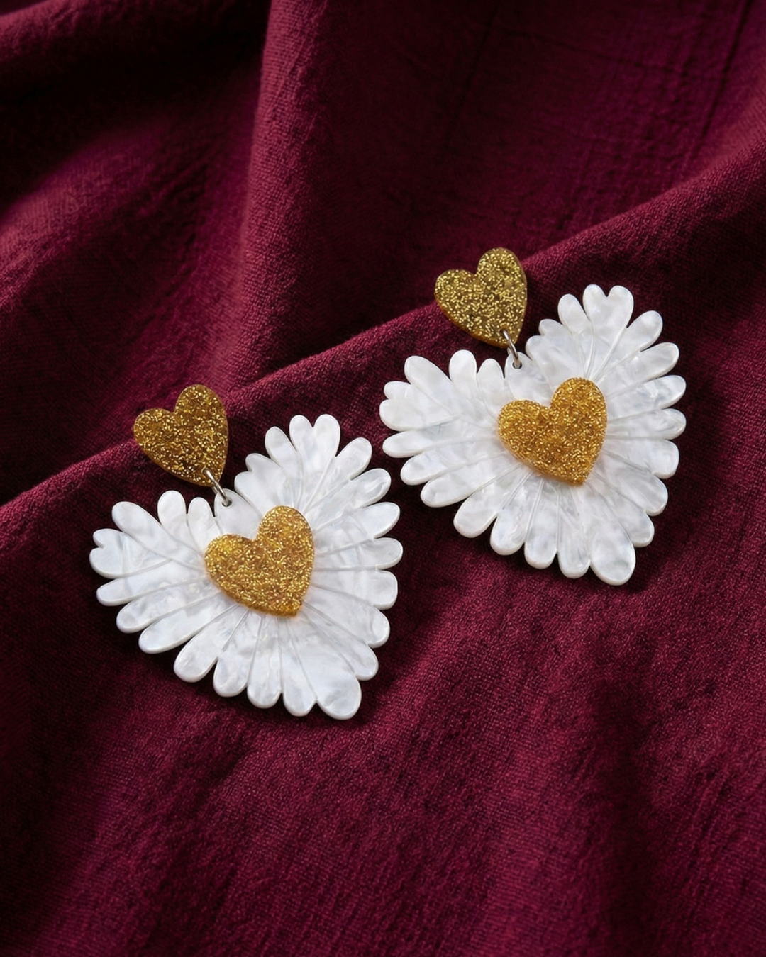 Los Amor Enflorado combinan pétalos en tono lavanda con un corazón central en glitter dorado que roba miradas sin pedir permiso. Su estructura ligera y su movimiento suave hacen que cada paso se sienta encantador, casi como si llevaras pequeñas alas brillando a tu favor.