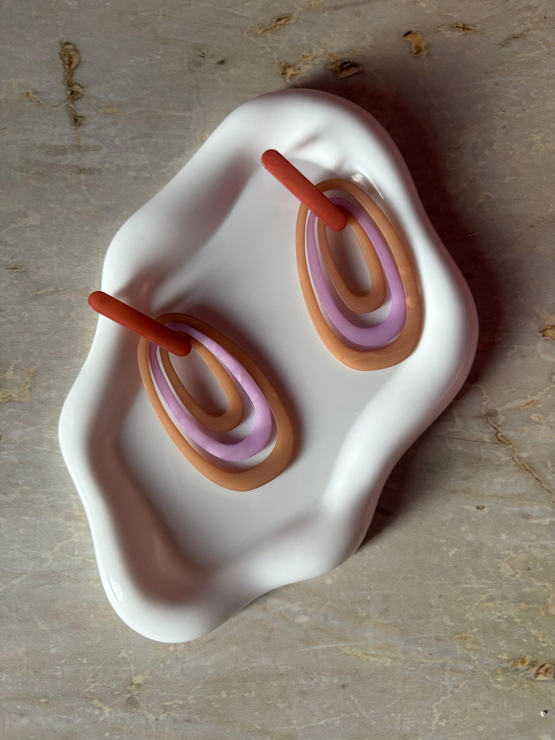 Los Aros Canela son una pieza moderna y ligera que combina formas orgánicas con tonos cálidos inspirados en la tierra. Su diseño en capas crea un efecto visual elegante y minimalista, perfecto para quienes buscan accesorios versátiles que realcen cualquier look.