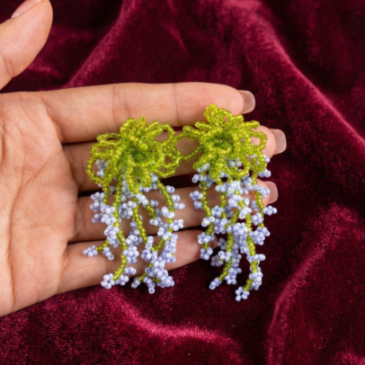 Cuando la naturaleza se pone coqueta, nacen las Ramitas de Primavera. Aretes de cuentas que caen en forma de ramitas danzantes, ligeros pero llenos de presencia. Se mueven contigo, brillan con la luz y traen ese aire fresco de los días que florecen.
