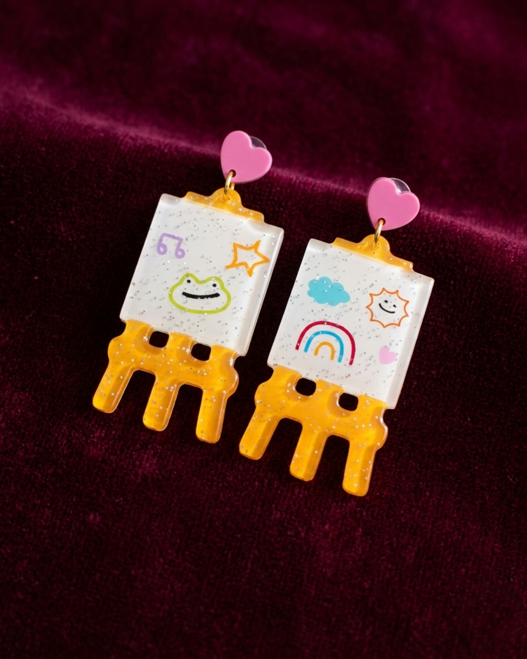 A veces la realidad es aburrida… así que mejor dibujar la propia. Delulu Art es ese par de aretes que parece salido de un cuaderno lleno de garabatos felices, colores que no piden permiso y pintura que decide escaparse del borde. Un pequeño recordatorio de que ser un poco “delulu” —soñar, imaginar y exagerar la vida— también es una forma de arte. Perfectos para quienes ven el mundo como un lienzo y no tienen miedo de llevar un poco de caos creativo en las orejas.
