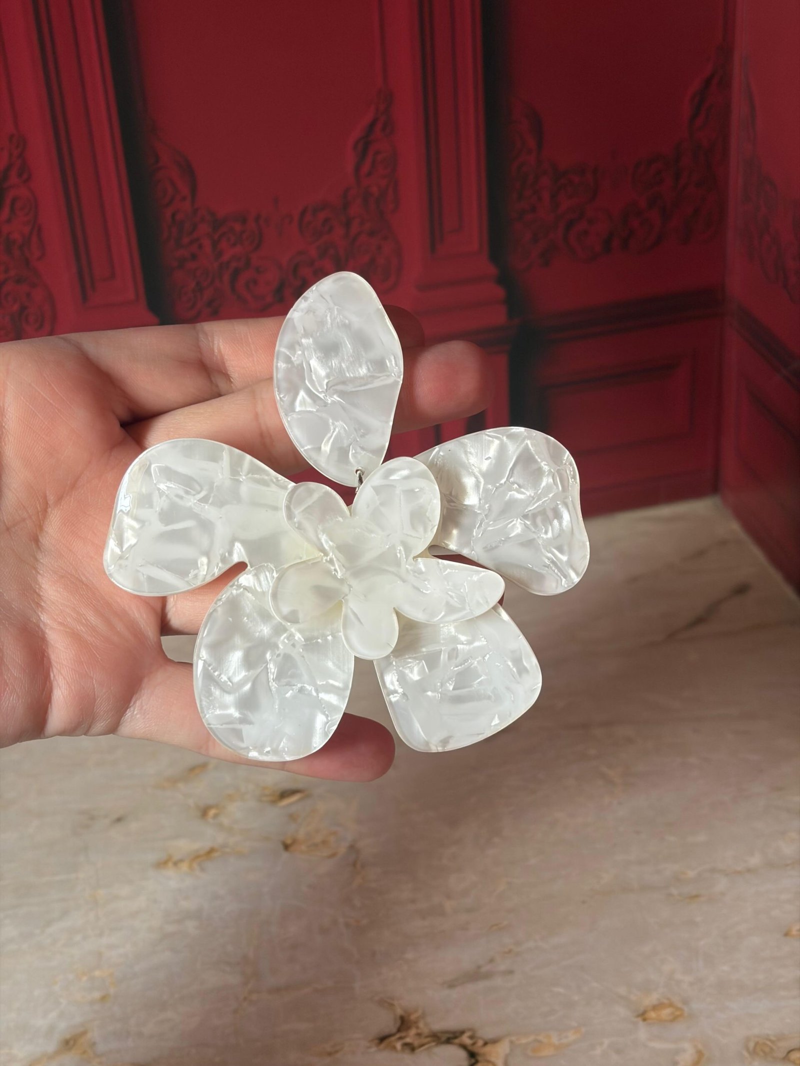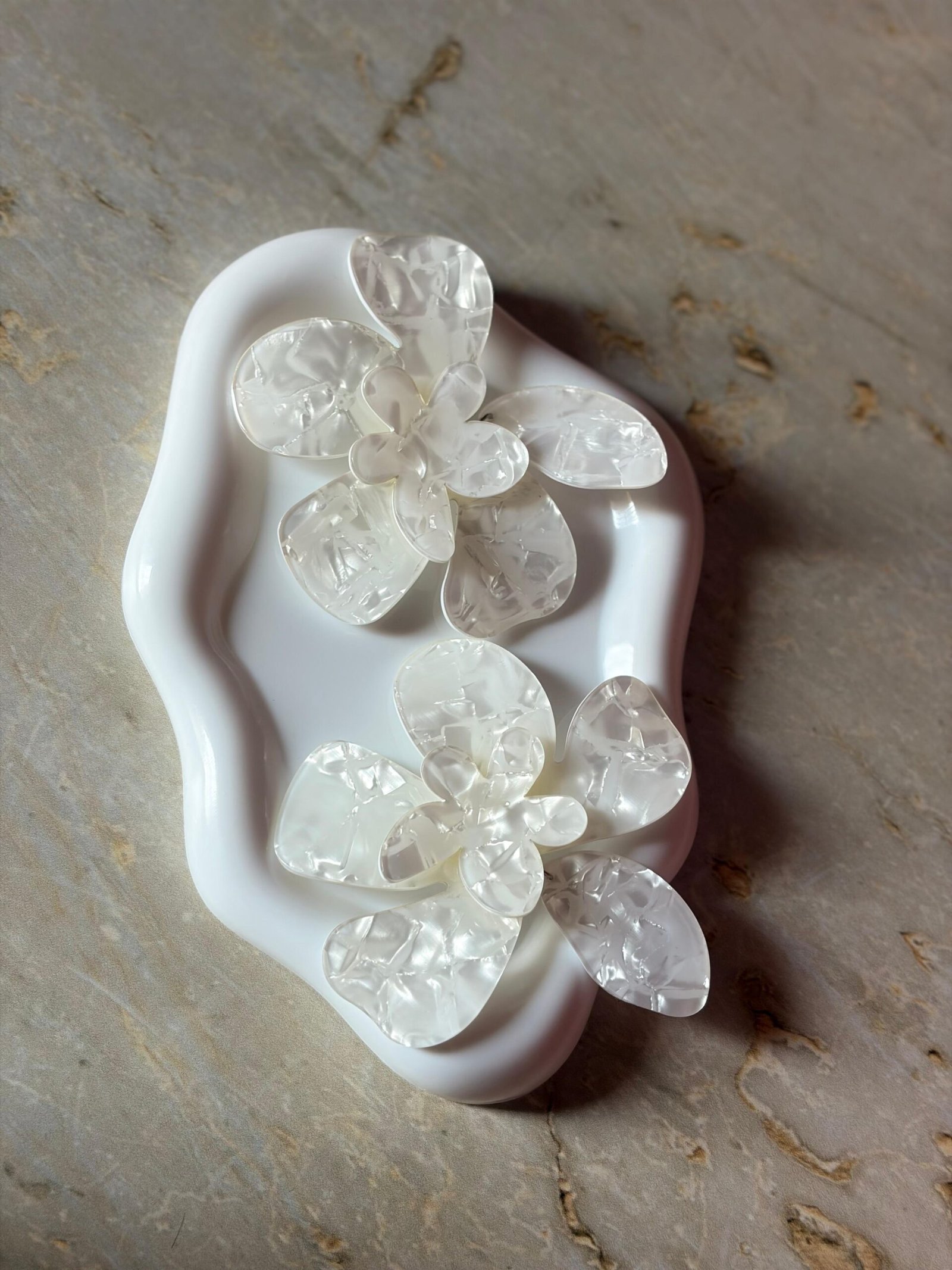 Inspirada en el poder de quienes no pasan desapercibidas, esta flor en acrílico blanco tiene presencia, textura y un aire de sol en vacaciones eternas.